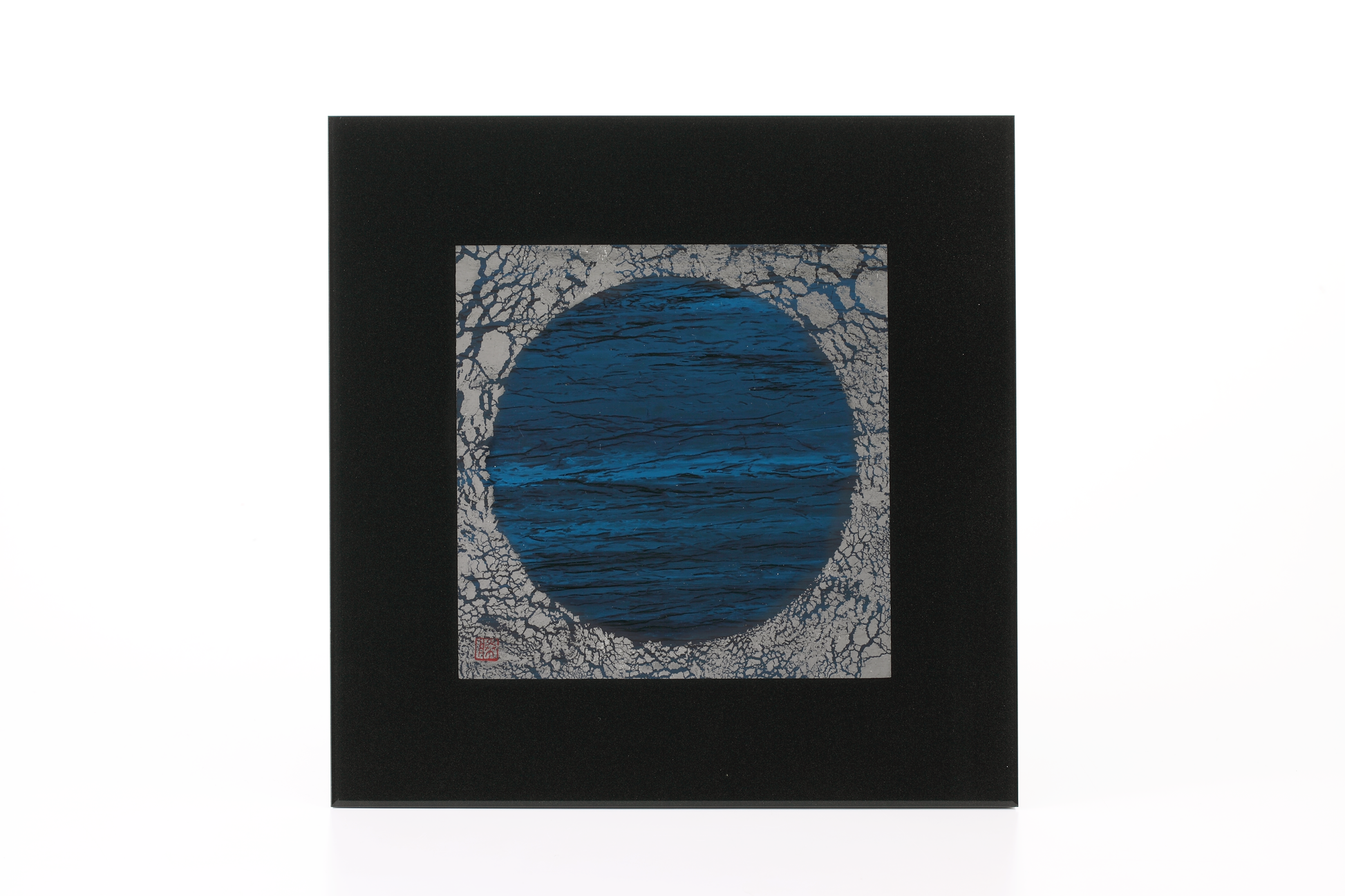 The full moon (a mysterious blue moon) that can only be seen once every three years is depicted using black and blue lacquer and platinum leaf.