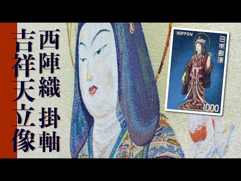 Kisshōten, venerated as the goddess of prosperity and peace, has been worshipped for centuries and continues to inspire reverence to this day. The Kisshōten Standing Statue, enshrined at the ancient temple Jōruri-ji in Kizugawa City, Kyoto Prefecture for over 800 years, has retained its vivid colors as a 'hibutsu'—a hidden sacred figure rarely unveiled to the public. These colors have been elegantly rendered in the medium of Nishijin-ori, transforming the three-dimensional artistry of the statue into the intricate, two-dimensional world of textile weaving. The statue’s plump form, often referred to as the most beautiful in Japan, is delicately expressed with soft, three-dimensional detail. The cheeks are blurred with shades of golden brown and light brown, while golden brown is applied beneath the eyes and on the nose. The upper lip is rose-colored, and the lower lip incorporates red and silver, all reflecting the exquisite sense of color of the Nishijin-ori artisan.